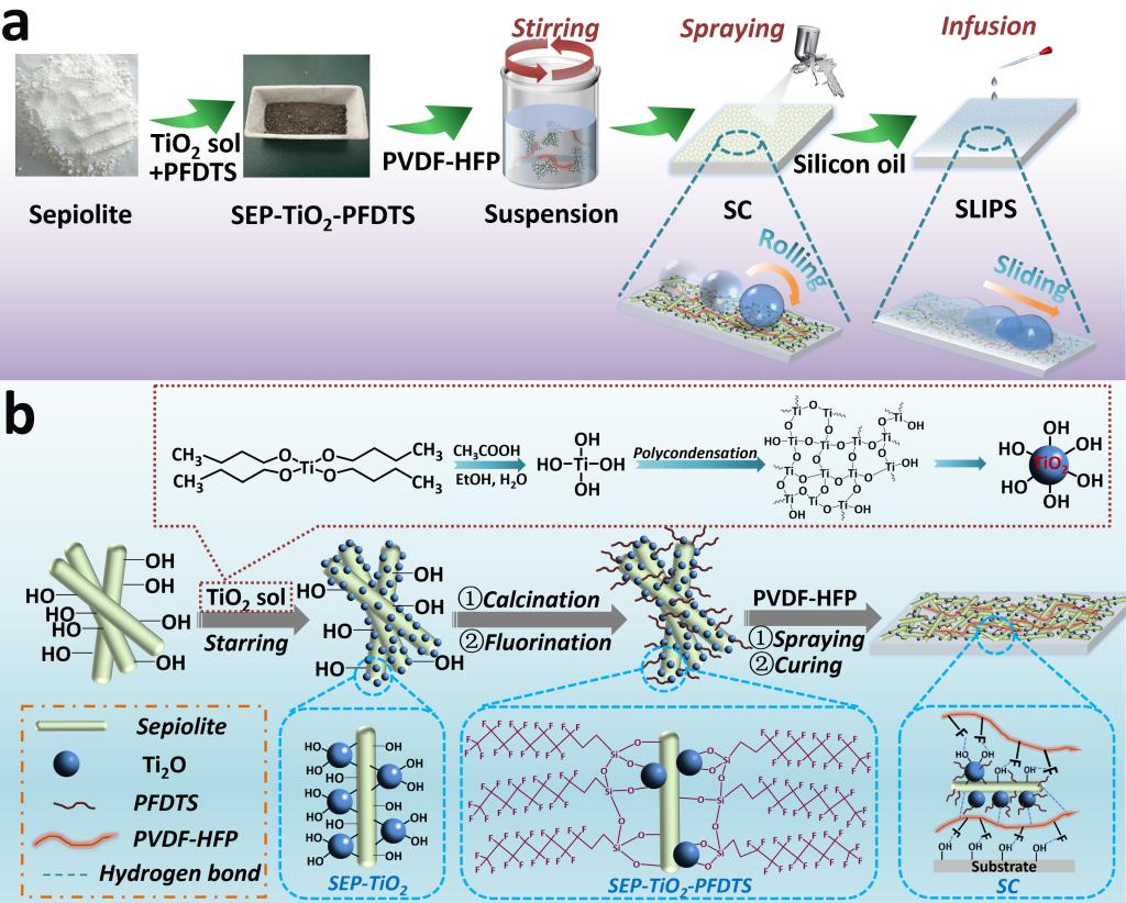 近日,化学工程领域刊物《Chemical Engineering Journal》以“A mechanically durable slippery liquid-infused porous surface based on distinctive ‘jaboticaba-like’ TiO2/sepiolite nanocomposites with superior hot water repellency and anti-corrosion for protecting various substrates”为题,报道了公司制备的具有优异机械耐用性、疏液性和防腐蚀性的“树葡萄状”TiO2/海泡石纳米复合材料方面的研究成果。