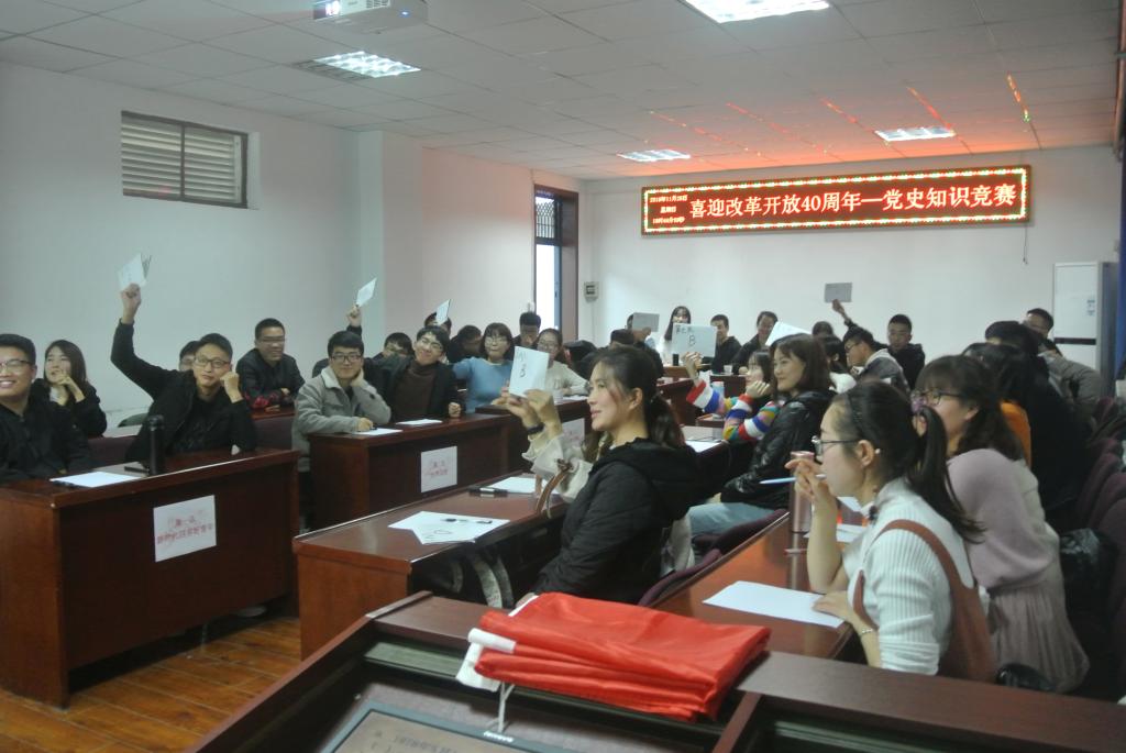 11月25日,化工公司研究生第三党支部在雁塔校区举办了“喜迎改革开放40周年”党史知识竞赛。公司党委副书记杨宝华老师、2018级所有党员和积极分子参加了本次活动。