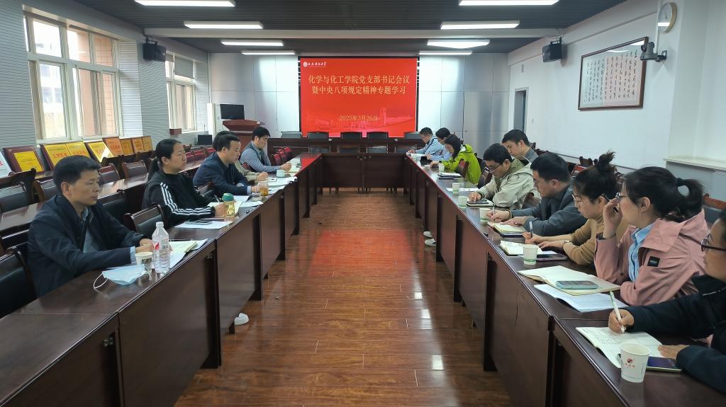 3月26日,化工公司在临潼校区召开党支部书记会议暨中央八项规定精神专题学习,公司党委委员、领导班子成员、各党支部书记、经理助理、院办主任、团委书记参加会议。公司党委书记肖阳主持会议。