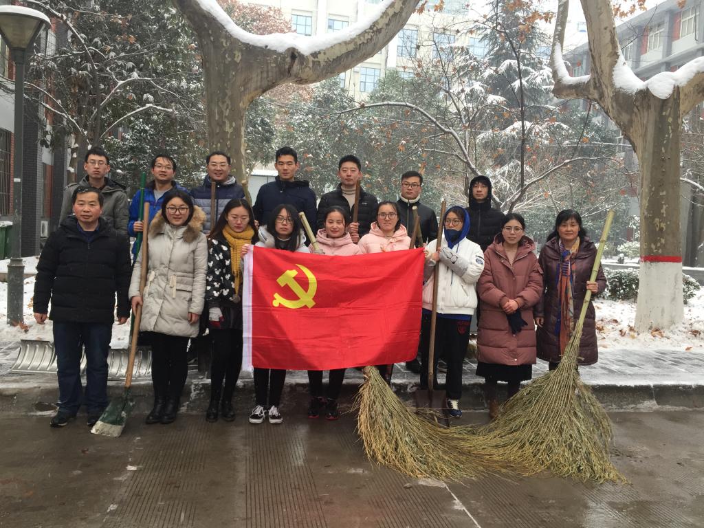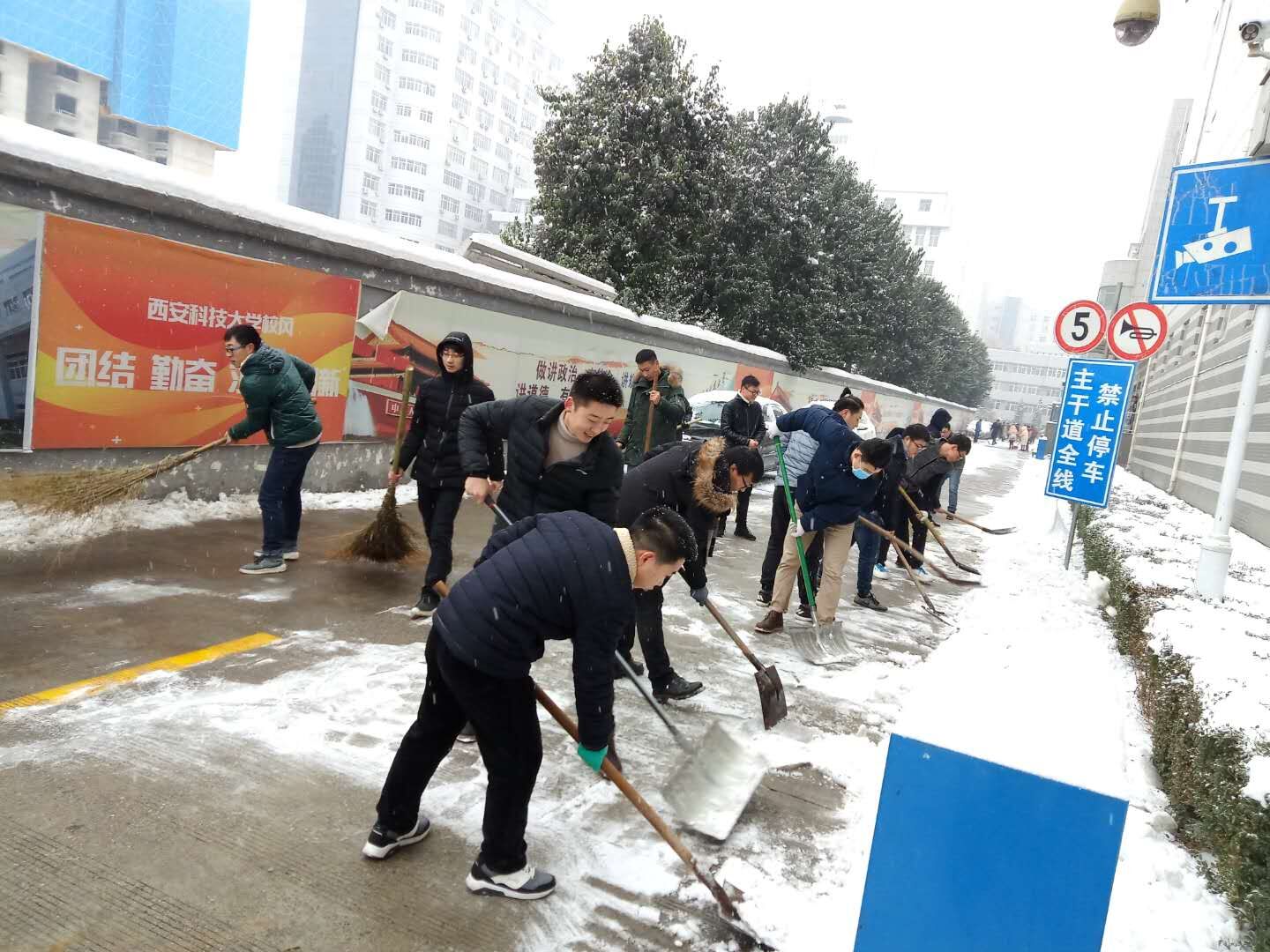 连日来的雨雪给公司教工员工出行带来了极大的不便和安全隐患。1月6日上午,化工公司组织了寒冬献爱心—道路积雪清扫活动。公司党委副书记杨宝华、副经理蔡会武带领化工公司二十余名研究生,对公司雁塔校区积雪进行了大面积清扫。不但方便了广大教师、员工的出行,也给广大研究生上了一堂生动的道德教育实践课。