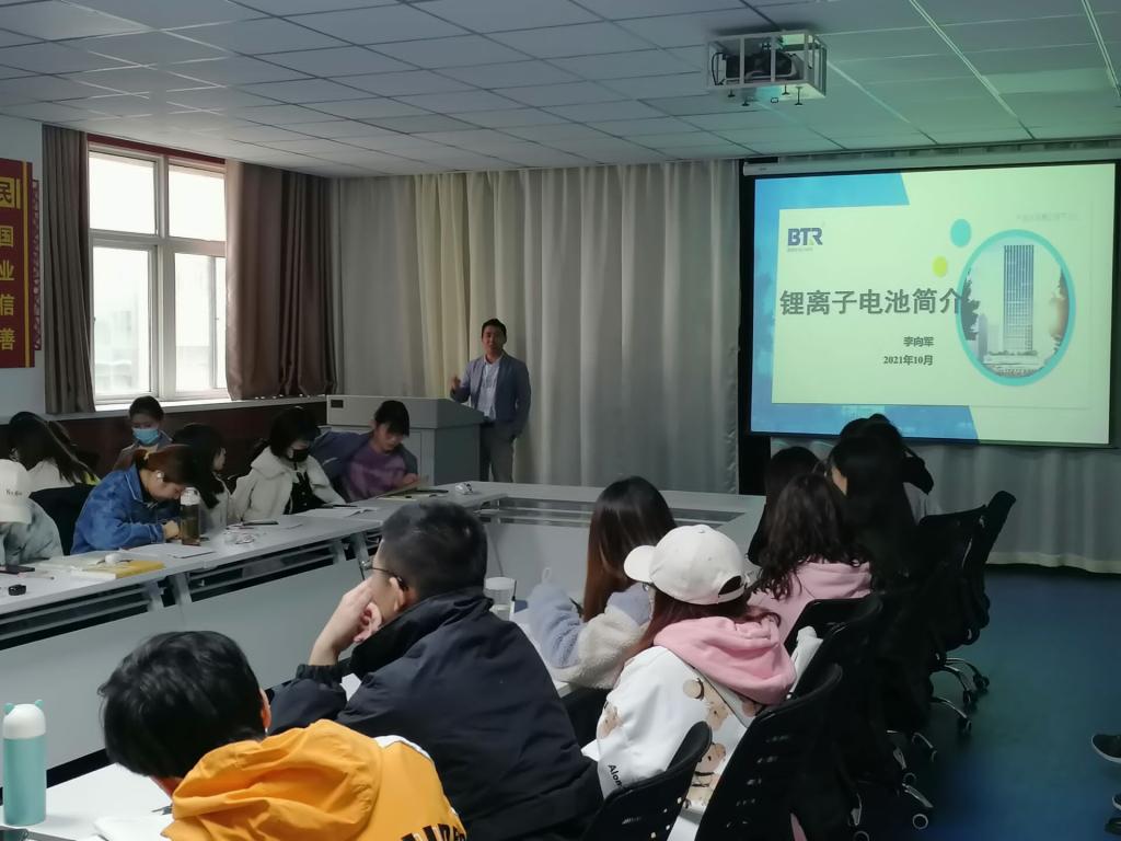 10月11日下午,BB贝博艾弗森在12教501教室举办了2021-2022学年第一学期“企业专家进课堂”活动,邀请了贝特瑞新材料集团股份有限公司技术总监、高级工程师李向军来公司为化工18级卓越班员工作“锂离子电池研究进展”的报告。
