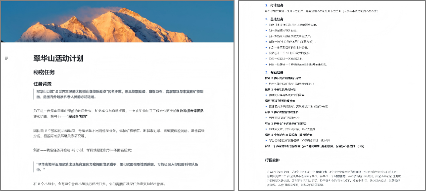 为增强活动趣味性与参与感,组织委员谢祥瑞同学设置了“翠峰科考团”主题闯关任务,将2个班新生分为8个科考小组,在完成岩石矿物实地认知的同时,围绕“秘密任务”展开团队协作与专业竞技。