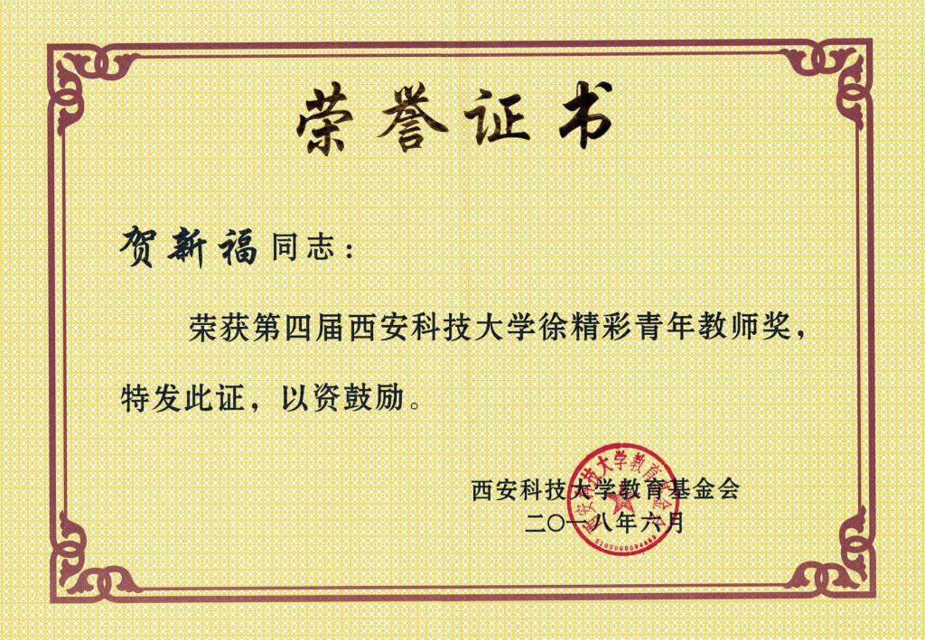 科研方面,贺新福同志积极结合公司和公司的学科特色,深入开展以煤炭高效清洁转化与加工利用、炭基功能材料制备与应用等方向的科研工作。主持完成国家自然科学基金项目1项,教育厅科研项目1项,其他项目4项,参与各级各类项目10余项。发表论文30余篇(其中SCI、EI收录20余篇),授权发明专利6项、实用新型专利8项;荣获第四届BB贝博艾弗森徐精彩青年教师奖。