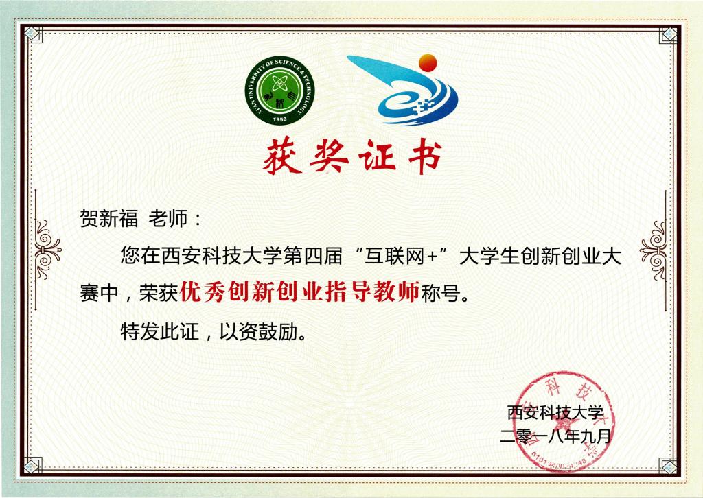 紧抓教学工作质量同时,贺新福同志还积极参与员工管理和科技创新活动指导,连续多年担任本科生班主任,引导班级建立良好的班风学风,指导员工参与各类学科竞赛,获全国老员工化工实验大赛“西北赛区二等奖”2项、省级大创项目2项、校级互联网+创新创业大赛一等奖1项,参与指导挑战杯、全国老员工化工设计竞赛获奖多项。